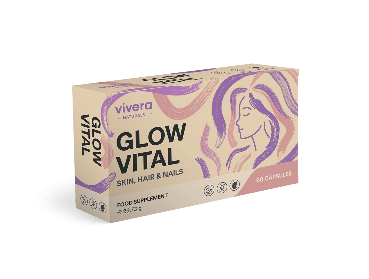 Vivera Glow Vital est un complément alimentaire beauté en capsules, pensé pour soutenir la peau, les cheveux et les ongles depuis l’intérieur.